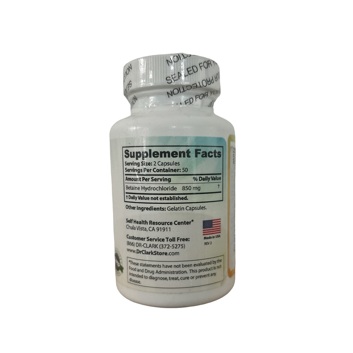 • Betaine HCL 425mg 100 cápsulas Dr. Clark Store