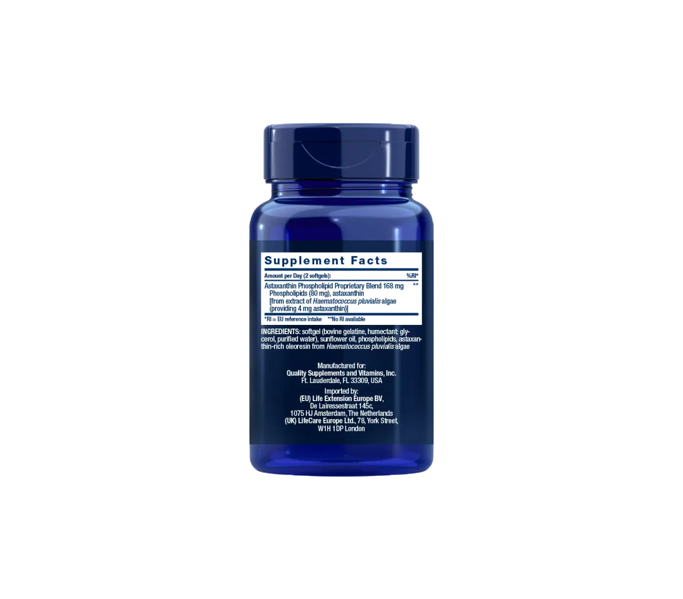 • ASTAXANTHIN  4MG 30 CAPSULAS LIFE EXTENSION