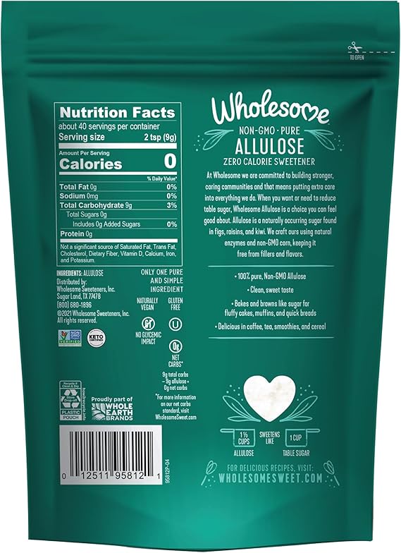 • ALULOSA ENDULZANTE ALLULOSE ZERO CALORIE GRANULATED SWEETENER 340gr